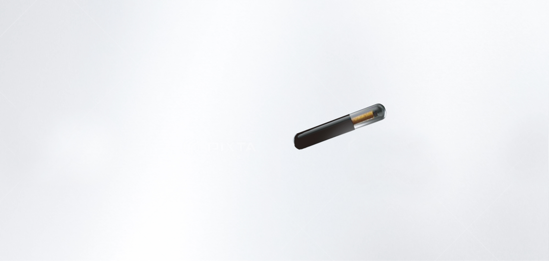 人の体内に埋め込む、直径約2mm・長さ14mmほどの小さな装置で、医療用のバイオセーフガラスで作られています。